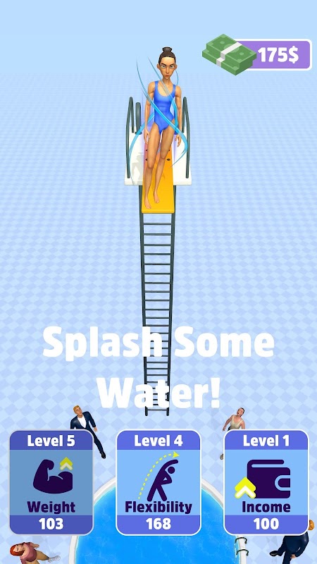 Jump, pose and splash some water! More water you splash, more money you gain! Upgrade your physique to splash more!
