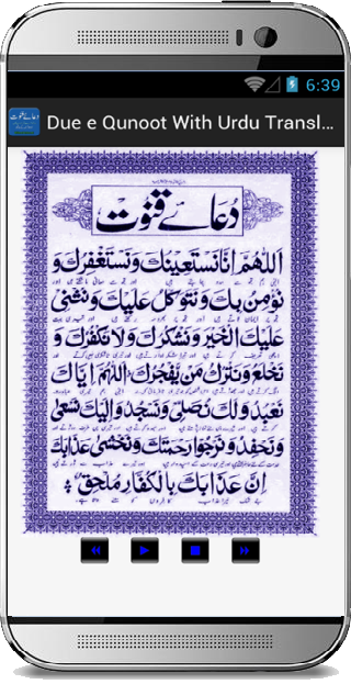 You can listen the recitation of Dua e Qunoot in arabic and can play, pause, stop, resume the audio in the background. You can also forward and rewind to listen the recitation.