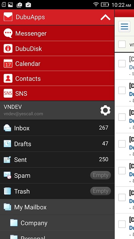 Traditional webmail breaks free at last with Dubu Mail, an advanced software interface plugged directly into the clouds. With unparalleled feature enhancements and full intercompatibility with all Dubu Suite applications, Dubu Mail provides a cutting-edge service to fulfill the needs of modern enterprises and institutions. Dubu Mail, with the extended functionality of Dubu Messenger, Dubu Disk, and with Dubu Editor built in, is a full communications environment allowing users to co-operate online in ways that dispose of traditional limits on productivity, creativity, and ingenuity. What's more, after the initial set-up, you can log-in to the service securely without having to roll out fresh installations across your own system - and you'll always have access to the last versions, functions, and features automatically.
