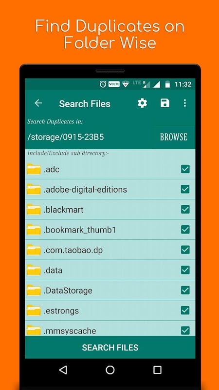 Usuń zduplikowane mediów z karty wewnętrznej i zewnętrznej SD dowolnej urządzeniu dołączonym.
