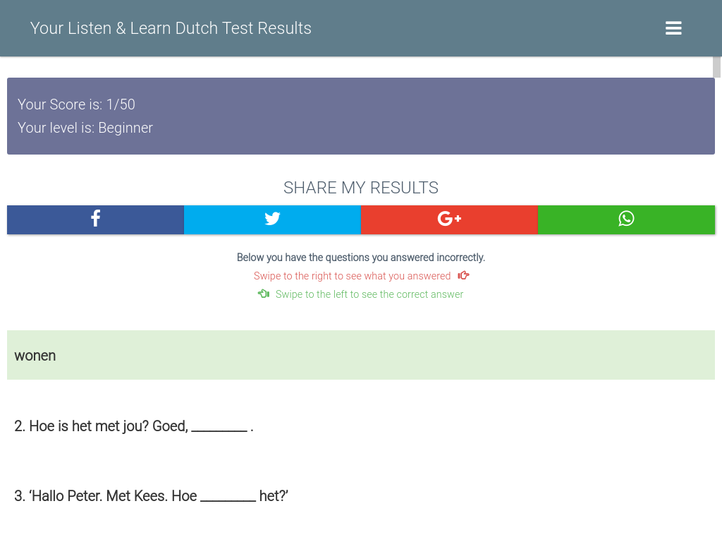 Take our Dutch Level Test, a 50 question test with instant results and explanation of your level, completely free. Don't be shy, challenge yourself and find our your level now, it only takes 10 minutes.