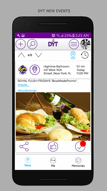 DoYourThing (DYT) jest inteligentny, na co dzień, a zabawa aplikacja kalendarza, który pozwala organizować i uczestniczyć w zajęciach w Twojej okolicy lub w czasie podróży. DoYourThing (DYT) konsoliduje wydarzenia z popularnych producentów takich jak Eventbrite, dostuffmedia i limitu czasu w ponad 170 miastach na całym świecie. DoYourThing (DYT) wykrywa bieżące geolokalizacji i pokazuje wydarzenia interesów w swoim sąsiedztwie, w ramach swojej skonfigurowanej promieniu. Co dzisiaj robisz? Kino, Kolacja z przyjaciółmi, koncert muzyczny? Znaleźć to wszystko na DoYourThing (DYT). Poznać nowych przyjaciół na kolację, pójść na koncerty z przyjaciółmi, skorzystać z imprez sprzedaży w Twojej okolicy, nauczyć się nowego sportu lub zorganizować imprezę Reunion. Możliwości są nieskończone.