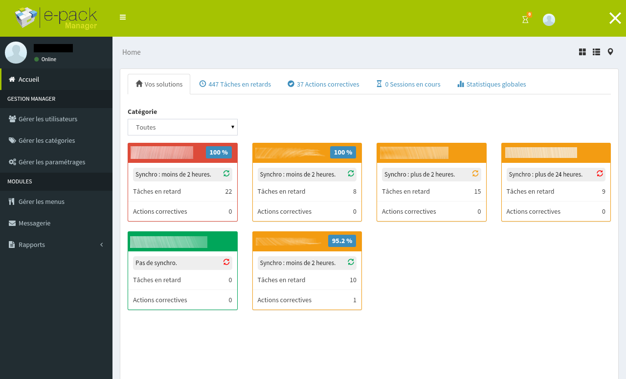 Specjalnie zaprojektowany dla profesjonalistów w żywności, grupy lub wielocentrowego catering, ePack Menedżer dostępne z bezpiecznego interfejsu pozwala menedżerów, kierowników jakości, franczyzodawców, etc ..., analizować, monitorować i optymalizować Real Time i zdalne na wszystkich typach DIGITAL MEDIA Sanitarny zarządzania master planu (PMS) i poziomu przestrzegania higieny i bezpieczeństwa żywności każdego z obiektów.