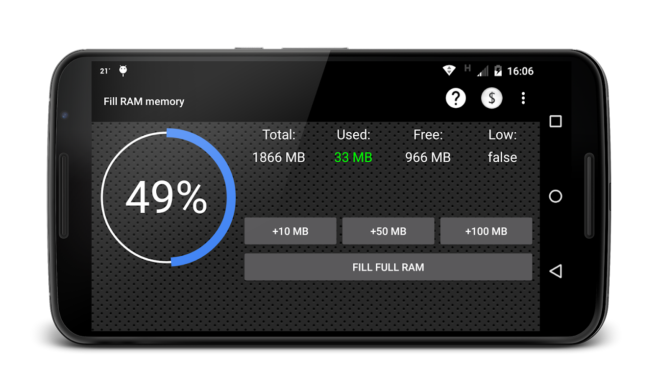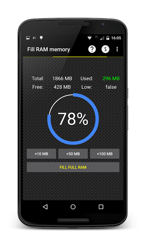 Informacje Fill RAM memory APK