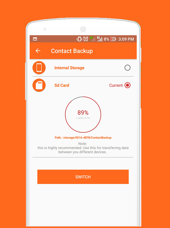 Można wykonać kopię zapasową wszystkich swoich kontaktów z jednym dotknięciem do pamięci wewnętrznej, jak i zewnętrznej pamięci masowej.