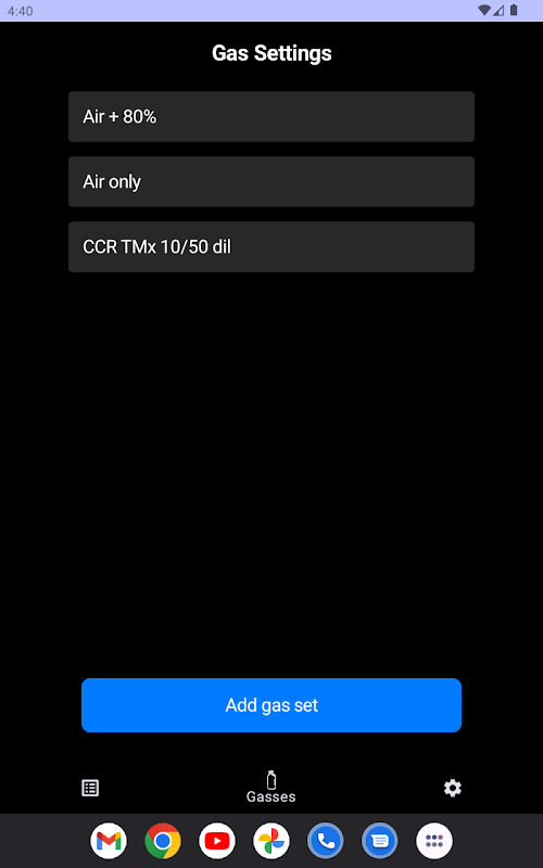 Łatwa konfiguracja różnych gazów i butli do późniejszego użycia, dzięki czemu możesz szybko przełączać się między typowymi mieszankami i sprawdzać efekty i wymagania dotyczące gazów dla swojego planu nurkowania.