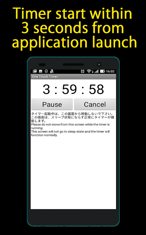 Zegar rozpocznie się w ciągu 3 sekund od uruchomienia aplikacji