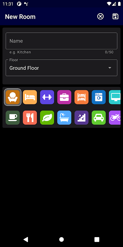 Gdy po raz pierwszy otworzysz aplikację, będzie ona pusta, co oznacza, że nie będzie w niej utworzone żadne piętro, pomieszczenie ani sterowanie. Będziesz musiał utworzyć te elementy zgodnie ze złożonością swojej sieci KNX.