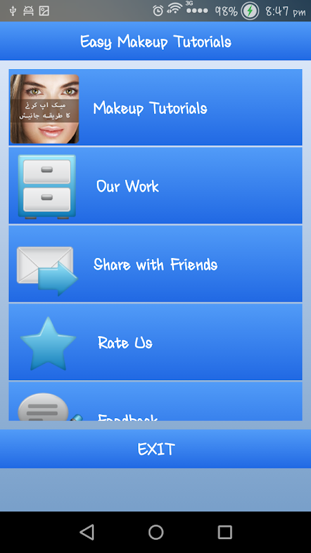 Easy Makeup Tutorial & Tips is an amazing, simple and light weight app. Makeup tips based on easy and step by step makeup tutorials, so with these tutorials you can learn new face makeup, eye makeup trends. Get the latest makeup tutorials with this Easy Makeup Tutorials & Tips.