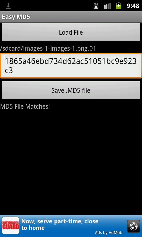 Easy MD5 is a fast and easy way to generate an MD5 or .MD5 file on the go.