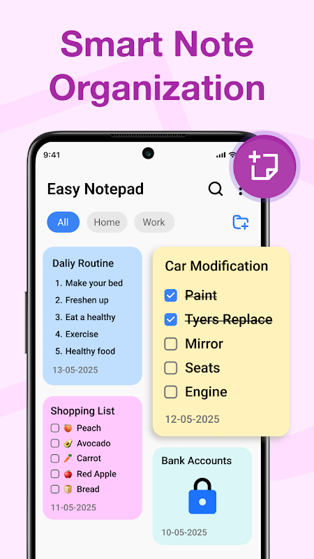 Funkcja automatycznego zapisywania: Easy NotePad może automatycznie zapisywać notatki i listy kontrolne, dzięki czemu nigdy nie stracisz ważnych informacji. Twoje treści do robienia notatek pozostają bezpieczne.