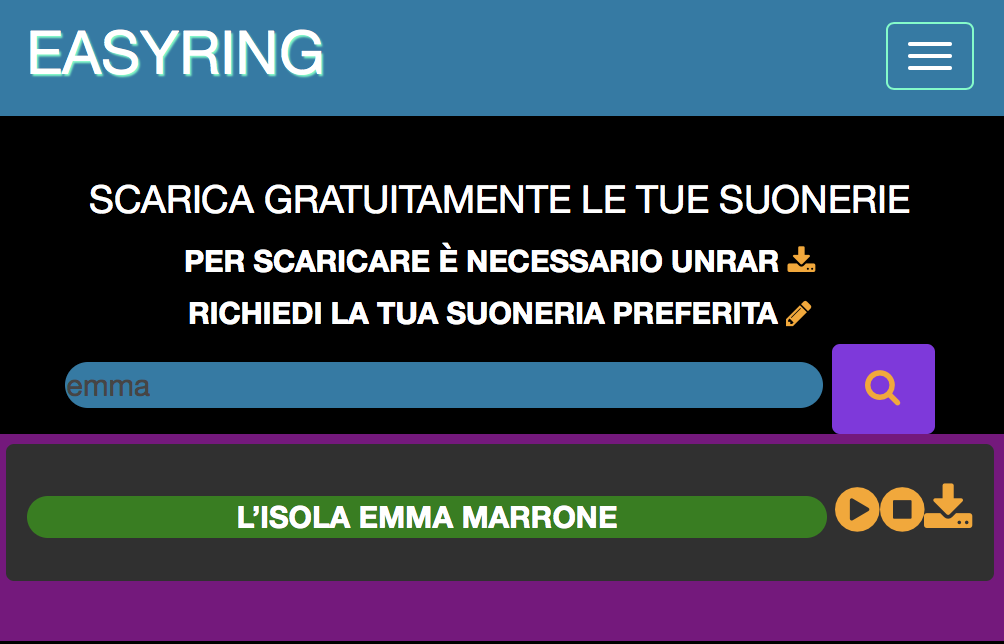 Tramite questa applicazione è possibile scegliere e cercare suonerie in mp3 , la ricerca può essere fatta in base al titolo , all'autore o in base al genere musicale.