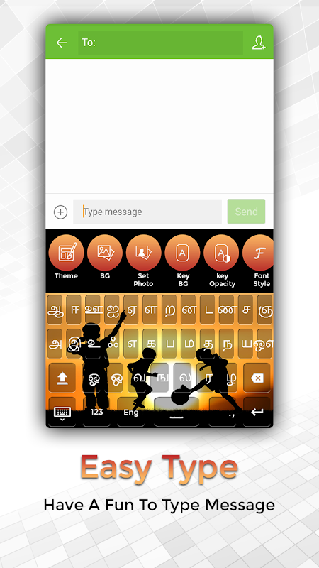 Łatwa Wpisanie Tamilskie klawiszowe, czcionki i motywy zapewnić wpisywać w języku tamilskim. można komponować wiadomości e-mail,