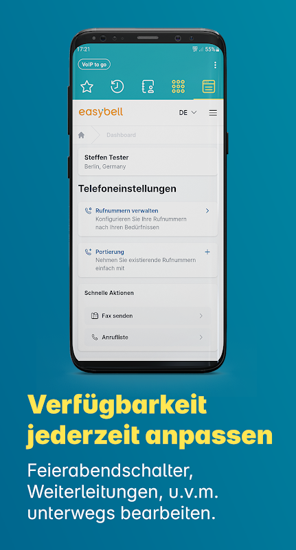 Dzięki aplikacji Easybell będziesz zawsze dostępny, tak jakbyś korzystał z niemieckiego telefonu stacjonarnego. Idealna w podróży lub w trybie hybrydowym.