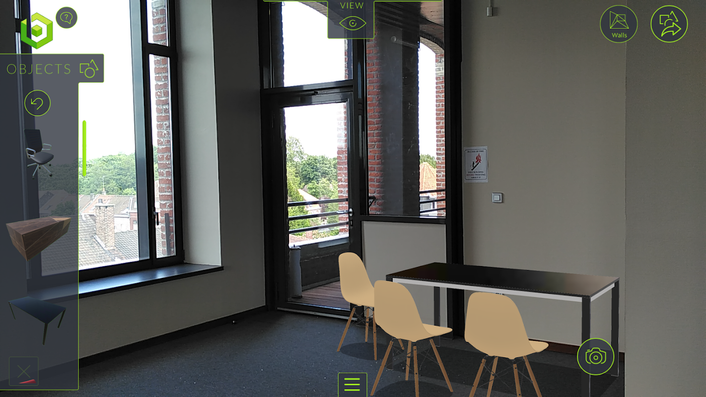 Add virtual furniture, customize decoration and change lighting. Everything is in real time and 1:1-scaled!