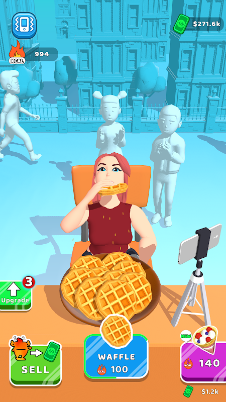 Jedz żywność, aby gromadzić kalorie, a następnie sprzedawaj, aby zarabiać pieniądze. Odblokuj więcej żywności i jedz więcej.