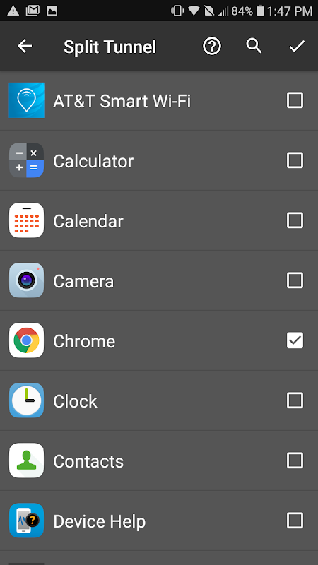 Eclipse VPN pozwala użytkownikom wybrać, które aplikacje na ich urządzeniu mogą ominąć tunel VPN.