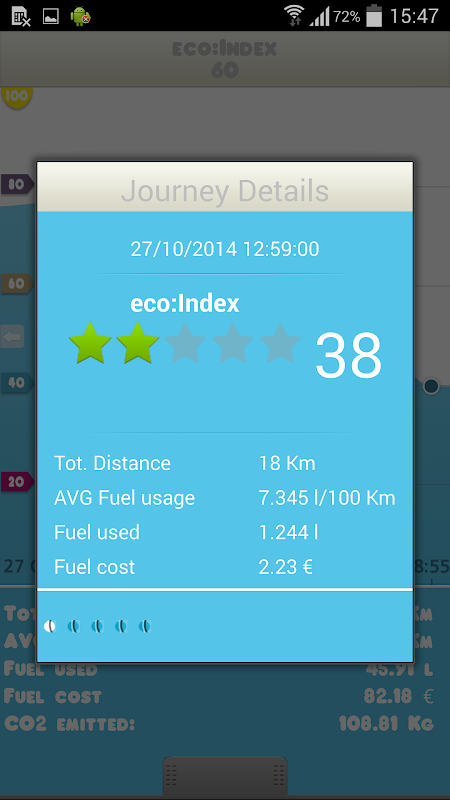 During each journey, it assigns a score to each parameter and calculates your eco: Index .