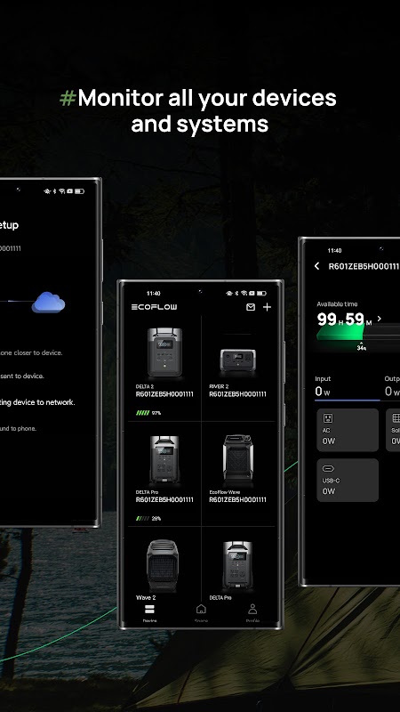 Użyj aplikacji EcoFlow, aby kontrolować i monitorować swoją elektrownię EcoFlow, zestawy zasilające i nie tylko. Połącz wszystkie swoje urządzenia przez Bluetooth lub Wi-Fi, aby wyświetlać statystyki w czasie rzeczywistym na wyciągnięcie ręki. Sprawdź podstawowe informacje, takie jak poziomy pojemności i moc wejściowa, lub weź energię w swoje ręce, ustawiając poziomy lub prędkości ładowania.