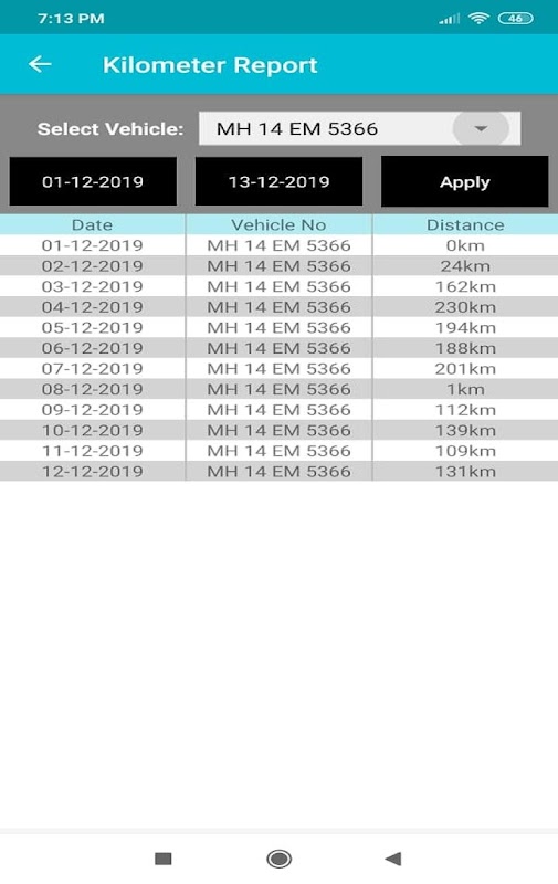 - Here you can see time, location, speed in dynamic tabular format of all vehicles or specific vehicleno with respect to date selection.