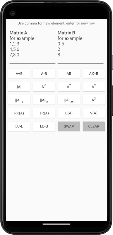 - Solver macierzy z odwrotnościami, transformacjami, mnożeniem, dodawaniem i nie tylko.