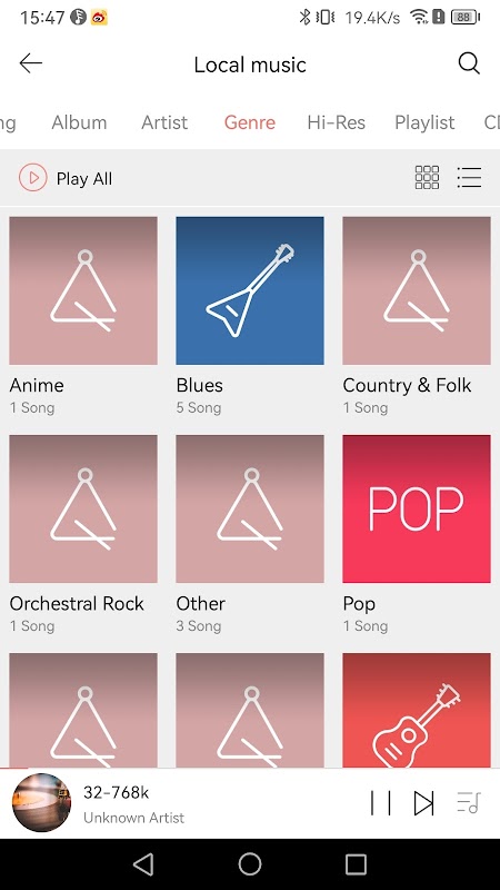 2. Przeglądanie biblioteki według albumu, artysty, gatunku i wysokiej rozdzielczości.