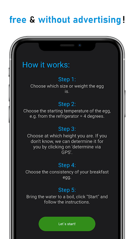 • Po prostu wprowadź informacje o jajku i użyj suwaka oraz podglądu obrazu, aby wybrać, jak chcesz zjeść jajko na śniadanie.