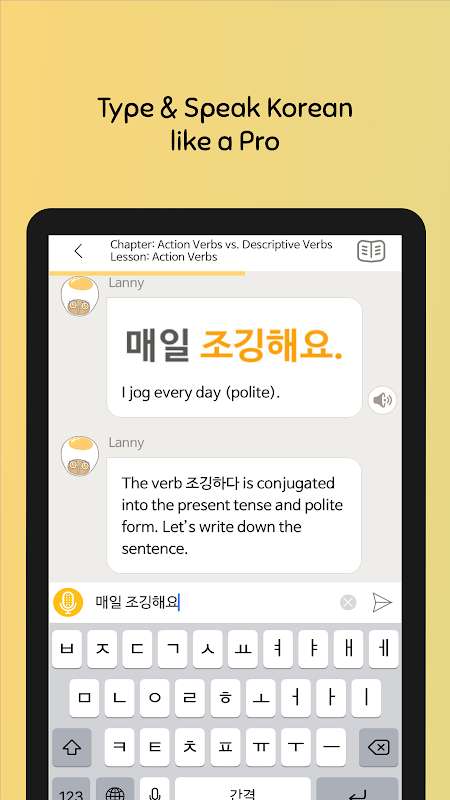 To zabawna aplikacja do czatowania w języku koreańskim, która umożliwia ćwiczenie umiejętności mówienia, czytania, słuchania i pisania po koreańsku… wszystko za pomocą czatu. Zacznij od rozmowy ze swoim osobistym nauczycielem chatbota, Lannym, i uzyskaj dostęp do ponad 550 lekcji koreańskiego, niezależnie od tego, czy jest to koreański dla początkujących, czy zaawansowanych uczących się języka. Mając Lanny w kieszeni, możesz uczyć się koreańskiego online zawsze i wszędzie!
