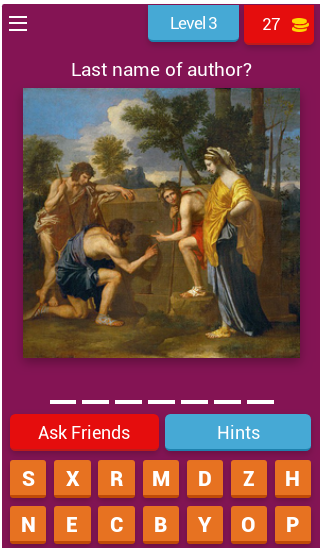 Can you guess all queries about the greatest painters? This game is intended for true art enthusiasts. Extremely difficult questions about the most outstanding artists. Can you answer them all?