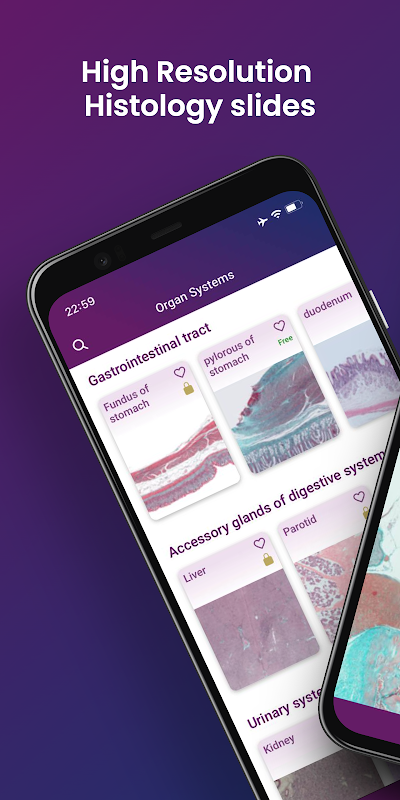 Korzystanie z tej aplikacji sprawia, że nie potrzebujesz laboratorium histologicznego. Ponadto opisano oznakowane preparaty histologiczne i każdą wyznakowaną strukturę. Ponadto każda oznaczona struktura jest opisana prostym schematem, co znacznie ułatwia naukę. Trzeba wyobrazić sobie strukturę 3D tkanek, obserwując przekroje 2D różnych tkanek. Schematyczne obrazy pomogą Ci wyobrazić sobie trójwymiarowe struktury narządów.