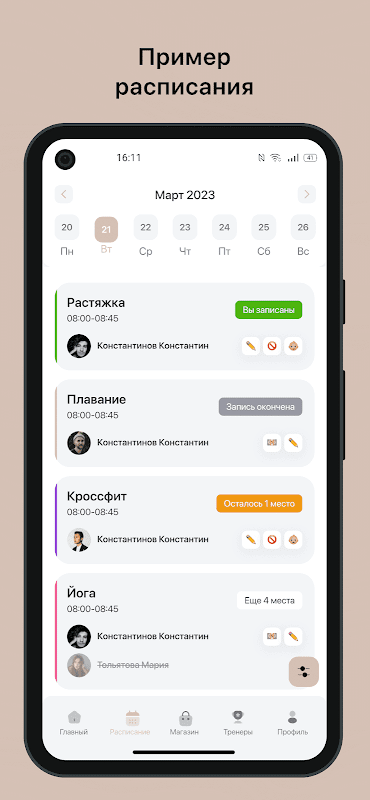 - Скорректированы статусы в "Моих записях" после регистрации на групповое или персональное занятие.