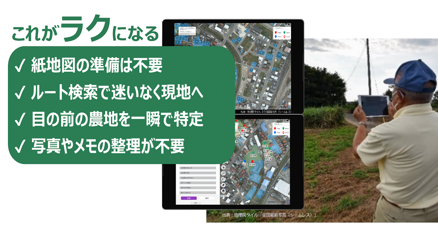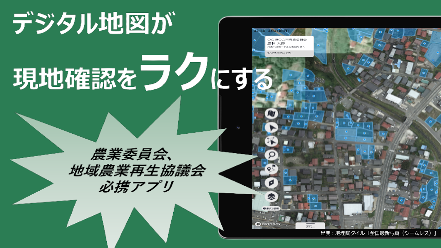 Jest to aplikacja wspierająca potwierdzanie na miejscu przez samorządowców w ustawie o gruntach rolnych oraz środkach stabilizacji dochodów zarządczych we współpracy z Ministerstwem Rolnictwa, Leśnictwa i Rybołówstwa Wspólny System Zarządzania Informacją Geograficzną (Mapa eMAFF).