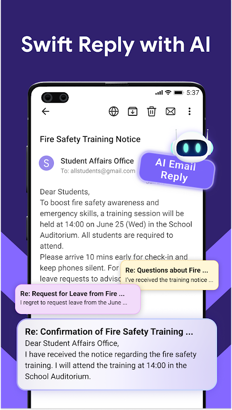For received emails, AI can provide multiple reply suggestions, and users can select or modify them as needed and send them.