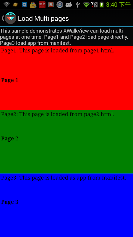 · Embedding API: XwalkView, LoadMultiPages, XWalkViewHideAndShow, XwalkExtension, MultipleSurfaceViews, MultipleTextureViews