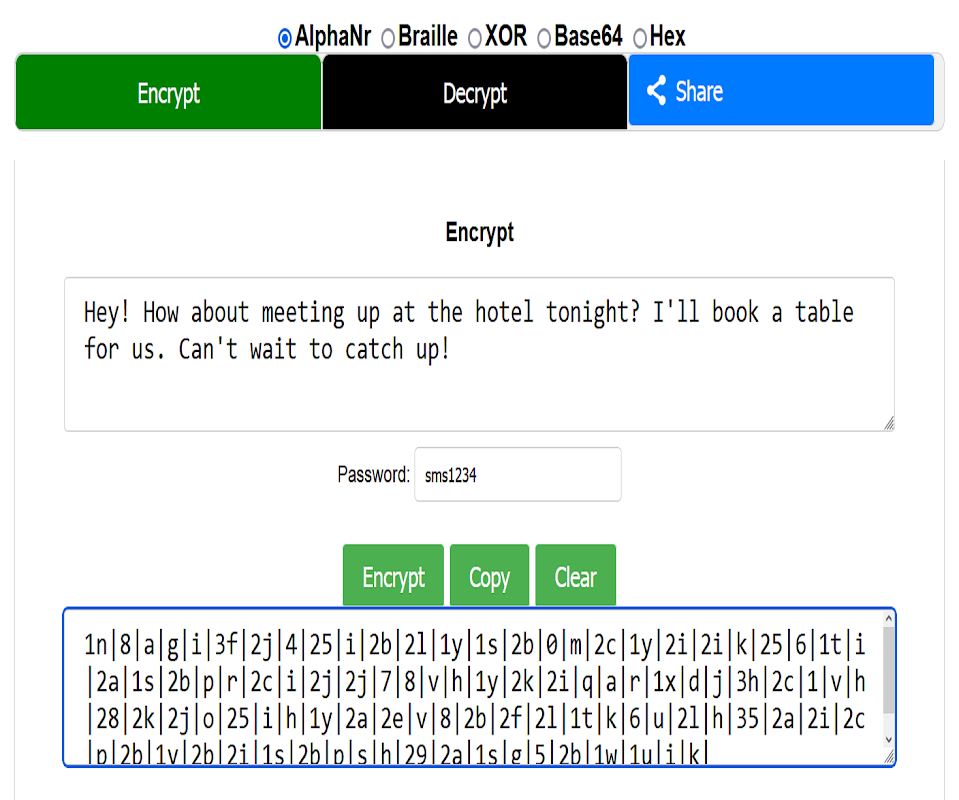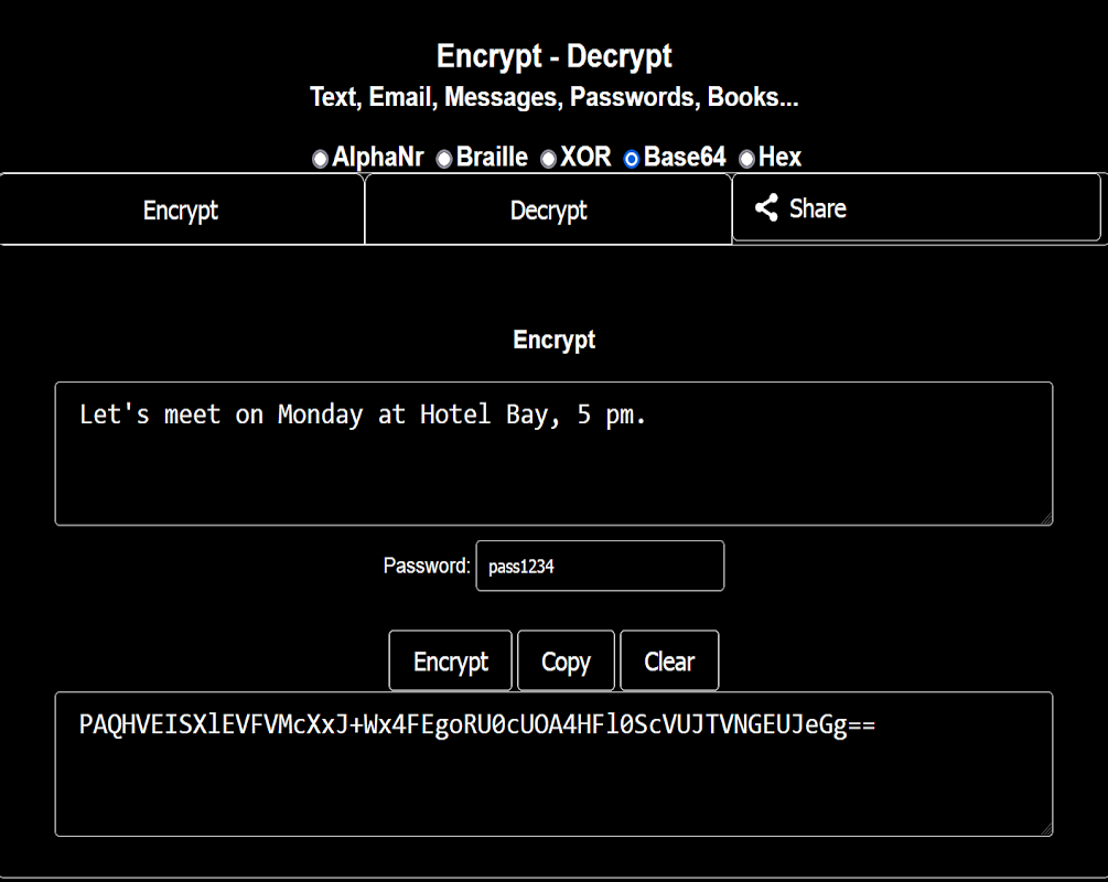 Szyfruj i/lub odszyfruj: SMS-y, e-maile, wiadomości, hasła, książki itp. z kluczem hasła lub bez niego.