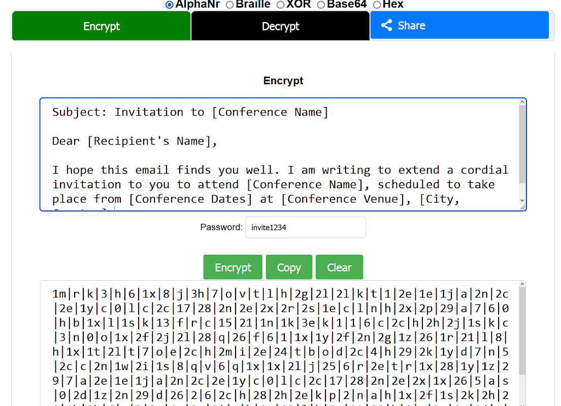 - Wiele algorytmów szyfrowania: aplikacja obsługuje wiele algorytmów szyfrowania, w tym AlphaNr, XOR, Base64, Hex i Braille.