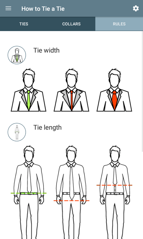 Nigdy więcej zgadywania, jeśli chodzi o wybór odpowiedniego krawata dla twojego garnituru. Nasza aplikacja zapewnia podstawowe wytyczne dotyczące dokonania idealnego wyboru.