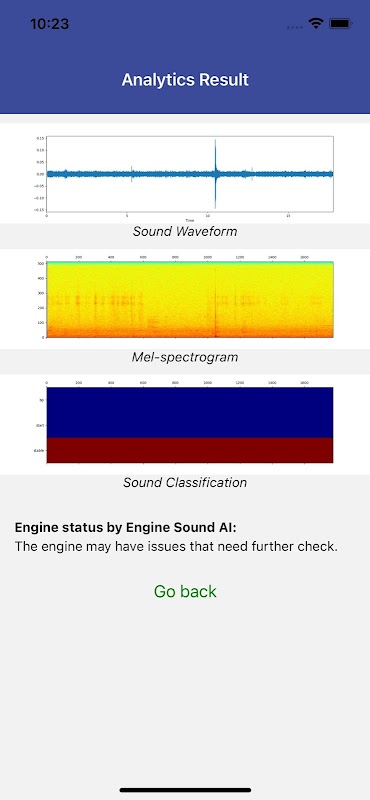This app is used for car users to detect any problems with their car's engine with the use of Artificial Intelligence model. User just needs to upload the audio files which contains his/her engine's sound, or record directly through the app to get the results.