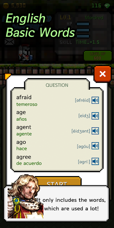 1. Level Dungeon: Możesz uczyć się angielskich słów na różnych poziomach.