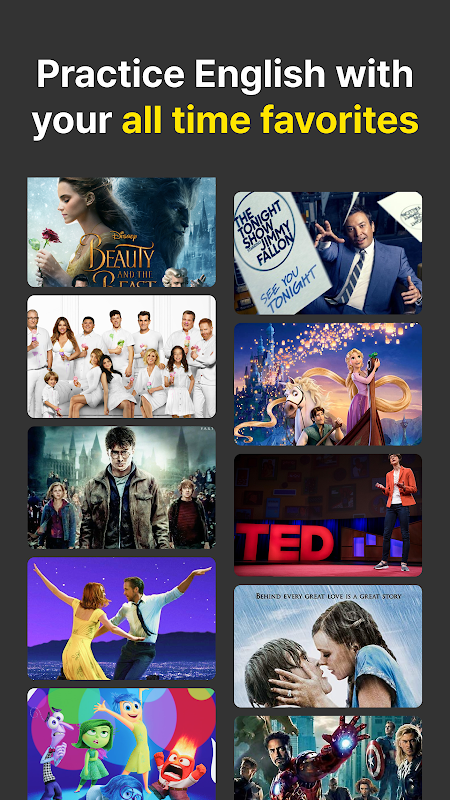 Nie musisz się poddawać. Po prostu baw się dobrze! Wybieraj spośród programów telewizyjnych, filmów, animacji, BBC News, wywiadów z celebrytami i nie tylko. Mamy wszystko gotowe do nauki. Ucz się angielskiego, nawet o tym nie wiedząc, oglądając swoje ulubione filmy. Czy film, którego chcesz się nauczyć, jest niedostępny? Poproś o niego zespół RedKiwi! (Uwaga! Możesz nie spać całą noc, ucząc się)