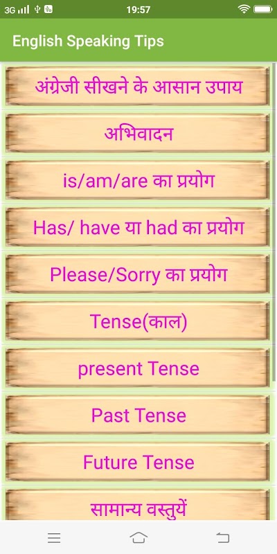 Ta aplikacja zawiera również przykłady codziennych użytecznych zdań w języku hindi i angielskim dla praktyki anglojęzycznej.