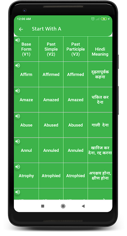 2. Jasne koniugacje: Łatwy dostęp do form V1, V2 i V3 dla każdego czasownika.