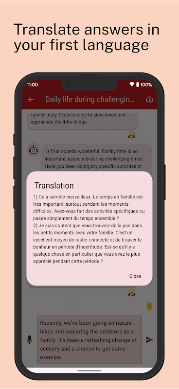 1. 💬 Łatwe rozmowy: prowadź naturalne i dynamiczne rozmowy z naszym inteligentnym chatbotem. Niezależnie od tego, czy jesteś początkującym, czy zaawansowanym uczniem, nasz chatbot dostosowuje się do Twojego poziomu umiejętności, zapewniając spersonalizowaną naukę.