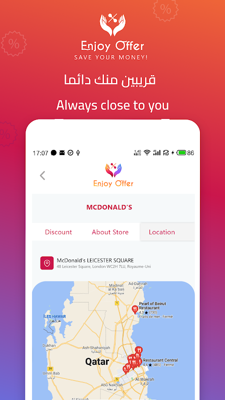 Aplikacja Enjoy Over oferuje najlepsze oferty i rabaty licencjonowane w Katarze, pobierz ją teraz i zasubskrybuj, aby uzyskać wspaniałe rabaty i stawki oszczędnościowe, które są naprawdę niezrównane. Warto mieć doświadczenie, zaoszczędzić czas i pieniądze w prostych krokach i czekać na oferty w innych krajach
