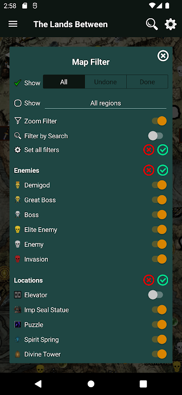Nieoficjalna mapa offline dla Elden Ring. Mapa przedstawia lokalizacje: