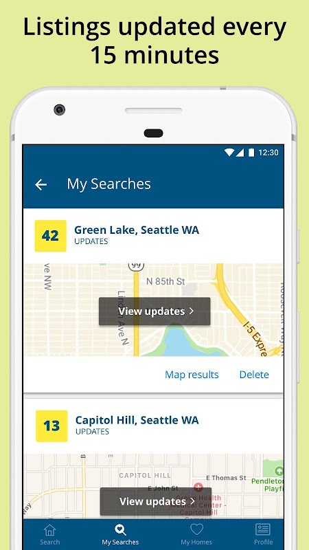 - Get listing updates first! We're obsessive about updating our house, townhouse, condo, land, and multifamily listings every 15 minutes, straight from the MLS. With instant push alerts, you'll be the first to know about new homes that match your search.