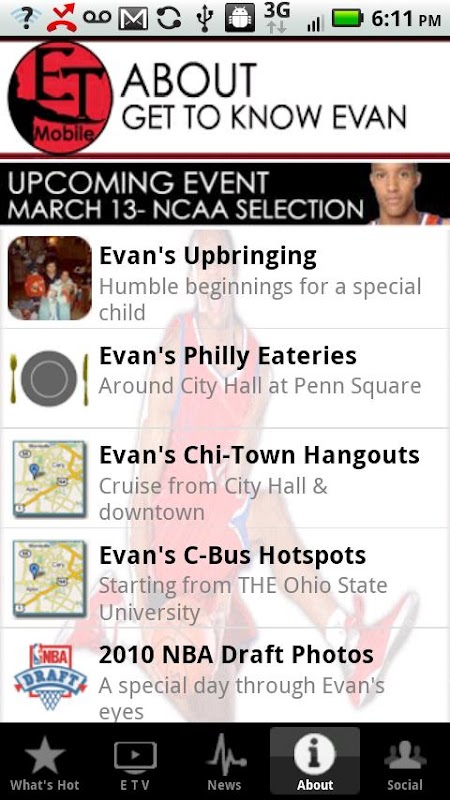 Go inside the life of Evan Turner, star of the Philadelphia 76ers, former Ohio State champion and college basketball “Player of the Year” as he gives insight in to the game and into his life. From the gym to the living room and back to the court, you’ll get to see the world from Evan’s eyes and learn what makes him tick. This app will keep you up to date on everything Evan Turner as he continues his rise to the top of the NBA!