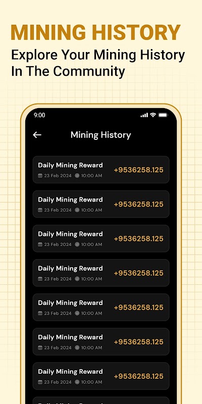 Ta aplikacja umożliwia przeglądanie informacji o wydobyciu w czasie rzeczywistym, takich jak hashrate, dane sesji wydobywczych, czas sprawności i szacowane dzienne nagrody. Całe wydobycie jest obsługiwane przez zewnętrznych dostawców usług wydobycia w chmurze — ta aplikacja po prostu pozwala Ci przeglądać wydajność i aktywność Twojego konta na urządzeniu mobilnym.