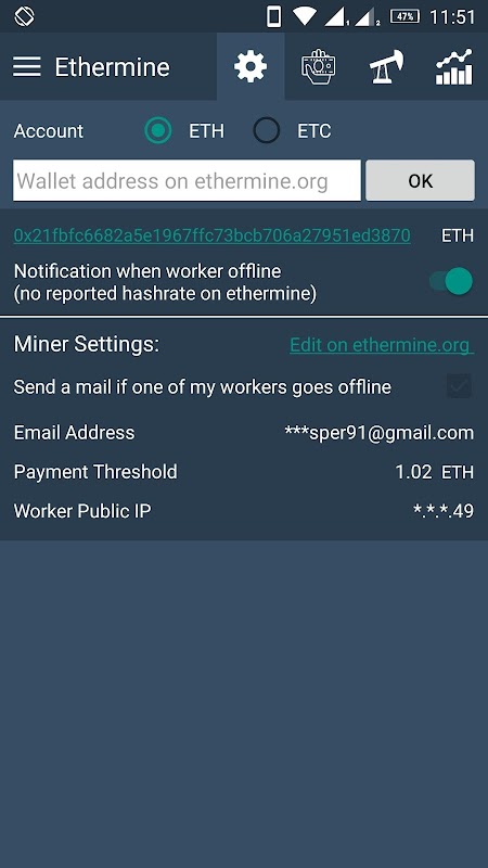 NIE jest wydobywanie aplikacji, obsłudze aplikacja do sprawdzania statusu na ethermine.org