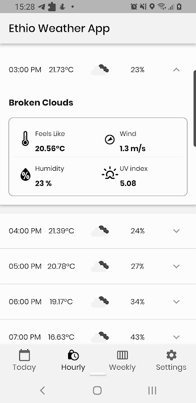 Ethio Weather to aplikacja pogodowa, która zapewnia bieżące, godzinowe i dzienne prognozy pogody.